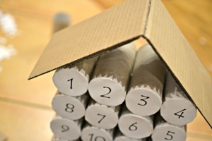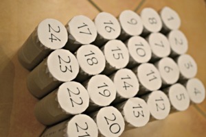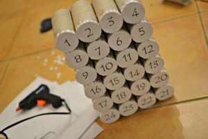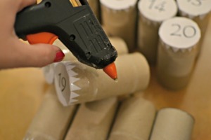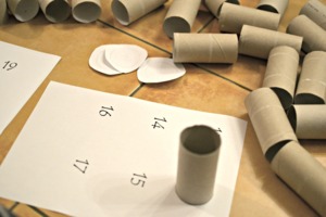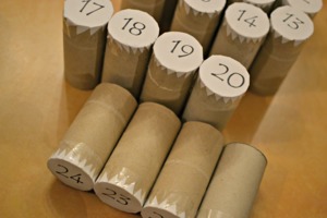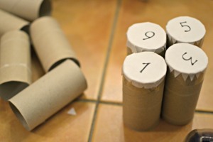 Jednotlivá kolečka s čísly přilepte k ruličkám. Můžete je ještě "pojistit" lepící páskou.
