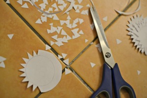 Jednotlivá čísla obstřihněte, ještě asi půl centimetru až centimetr dál od nakresleného kolečka. Vystříhejte zoubky. Od okraje vystřiženého kolečka až k nakreslené kružnici. To proto, že se pak kolečko lépe přilepí k ruličce.