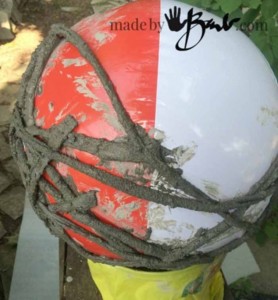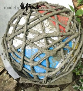 Až beton úplně ztvrdne, můžete odstranit balon zevnitř. Pevný balon na hraní vyfoukněte, obyčejný gumový balonek praskněte a vyndejte z betonové koule ven.