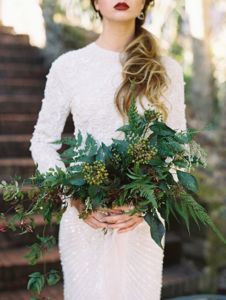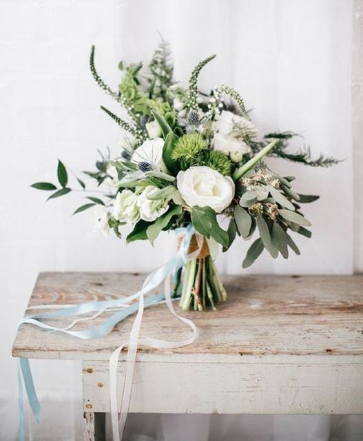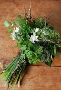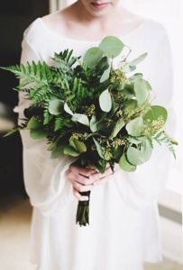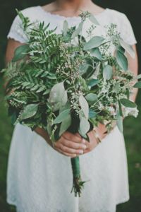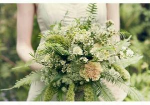 Při jednoduchých venkovních svatbách je možné také vytvořit svatební kytici z čerstvých voňavých bylinek a přírodnin – kapradí, levandule, máta, aj.