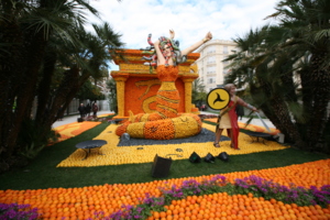 A když navíc v těchto dnech dorazíte na ulici Avenue Boyer, čeká vás asi největší překvapení ze všech. Zdejší park se v době festivalu už od třicátých let minulého století každý rok promění v galerii pod širým nebem. Konkrétně v přehlídku neuvěřitelných soch. K vidění je vždy trochu něco jiného, podle zrovna zvoleného tématu. Takže letos je tématem karnevalu pocta filmovým studiím Cinnecitá, kde režíroval své filmy Federico Fellini. V Cinecittě vznikly například romantické Prázdniny v Římě s Gregory Peckem a Audrey Hepburnovou v hlavních rolích. V minulých ročnících mentonského festivalu jste mohli vidět třeba obřího mamuta, mayský kalendář, římský palác či trojského koně. Specialitou Mentonu však je skutečnost, že tyhle sochy mají jen omezenou trvanlivost protože jsou celé z pomerančů a citronů.