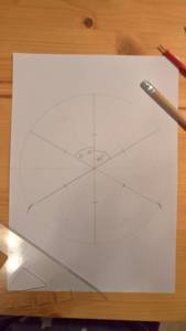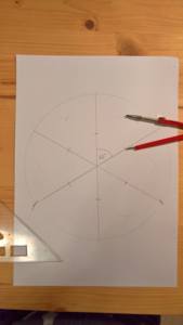 5. Stejným poloměrem jako v předchozím bodě vyznačte střed každého dílku viz obrázek.