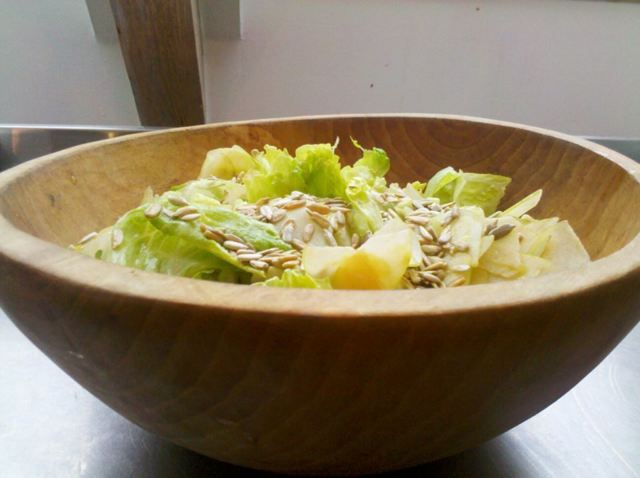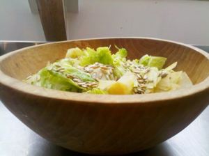 Slunečnicová semínka opražíme se solí na pánvi a opatrně dosypeme do salátu.