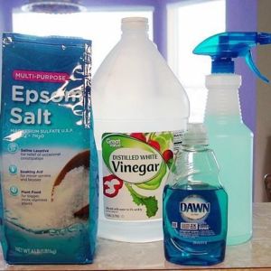 Do hrnce dejte půl hrnku vody a půl hrnku octa. Zahřívejte, až bude tekutina celkem dost teplá. Přidejte sůl a zamíchejte. Nechejte rozpustit, občas promíchejte.
