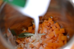 Zapněte plotnu a vařte doměkka. Poté rozmixujte ponorným mixérem nebo ve stolním mixéru.