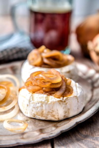 Čerstvou cibulku nakrájejte na tenká kolečka a dejte nasucho restovat na tál grilu. Po chvíli restování, změklou cibulku zalijte pozvolna černým pivem a nechte ji zkaramelizovat. Cibulka do sebe natáhne nasládlou chuť piva. Takto připravenou cibulkou můžete poklást každý z hermelínů.