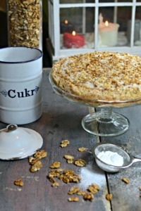Uvařte si horký čaj nebo kakao a s chutí se zakousněte do tohoto koláče. Připomíná trochu linecké cukroví a ořechy s cukrem mu dodají nekonečně lahodnou chuť.