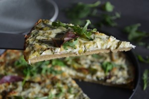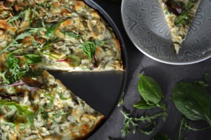 Dnešní výborný koláč můžete podávat teplý nebo studený. Jak máte chuť. Vlítněte do sezony medvědího česneku rovnou po hlavě.