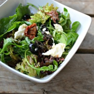 Listové saláty s olivami a sušenými rajčaty