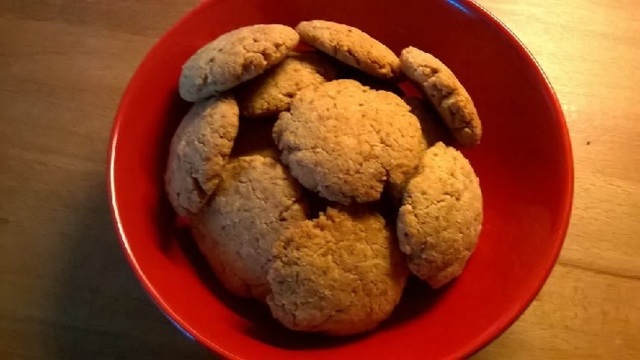 Maslo roztopime v mikrovlnke. V miske premiesame mandlovu muku so sladidlom, pridame roztopene maslo a rukou tvarujeme gulicky, ktore nasledne roztlacime na plechu na toliare. Pecieme v predhriatej rure na 180 stupnov 10 - 15 minut.