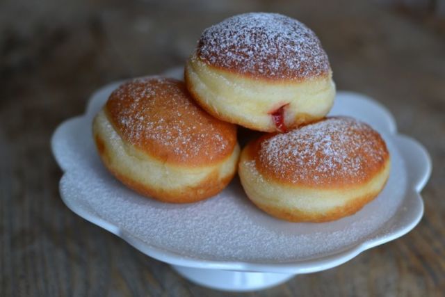 Kdo by je nemiloval? Dozlatova vypečené koblížky s marmeládou nebo vanilkovým krémem.