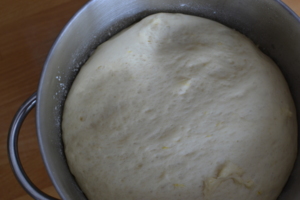 Připravíme si do mísy mouku a do ní vylijeme vykynutý kvásek. Přidáme žloutky rozšlehané v deci vlažného mléka. Přidáme rum, citronovou šťávu, špetku soli, cukr a rozpuštěné, mírné vychladlé máslo. V kuchyňském robotu vypracujeme těsto, které necháme na teplém místě kynout.