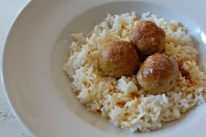 Podávejte kuličky s rýží, kterou přelijete výpekem z masa, který se smíchal se smetanou.