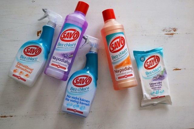 Nová řada dezinfekčních čističů obsahuje jednak tři bezchlorové spreje: Savo Na vodní kámen, Savo Odmašťovač a Savo Víceúčelový sprej, jednak tři varianty přípravku Savo Na podlahy, lišící se hlavně svojí vůní. Je jen na vás, zda dáte přednost vůni jarní svěžesti, levandule či eukalyptu.