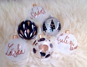 Máme to štěstí, že se opravdu většinou sejdeme v tom, co se nám líbí a co ne, věděly jsme už od začátku, že kolekcí uděláme několik, tak, aby si každý našel tu svou. Chyběly nám typicky české ozdoby s vánočními slovy, které jsou pro Vánoce charakteristické. Vsadily jsme také na námi milovanou jednoduchost a skandinávský styl a navrhly černobílé kolekce – s vánočními motivy, velmi minimalistické koule se slovy a kolekci Marble, kterou si děláme úplně samy doma v kuchyni. Velký úspěch mají momentálně čiré koule se jménem.