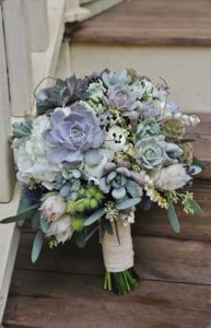 Naprostým hitem pro svatby všech ročních období jsou sukulenty – dají se vytvořit kytky samostatně sukulentové – např. na zelené svatby, ale také můžeme sukulenty skvěle kombinovat prakticky s jakýmikoliv květinami světlých barev.