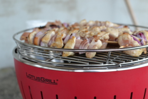 Tento úžasný gril používáme už asi dva roky. Nejdříve sloužil jako "pomocný" gril u našeho velkého grilu. Po čase jsme starší velký gril úplně odstavili a používáme pouze LotusGrill. Když grilujeme pro čtyřčlennou rodinu, tak je naprosto dostačující. Máme vyzkoušeno, že celkem v klidu ugriluje i maso pro dvě takové rodiny. Jen servírování hotových jídel probíhá v lehce poklidnějším tempu. A tak se pro větší grilovačky snažíme vymýšlet rychleji hotové pokrmy. Tenčí plátky masa, zeleninu, ryby.