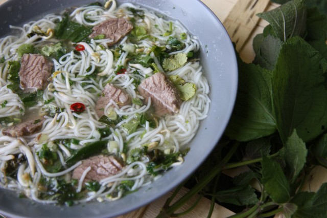 Skvělá je úprava phơ bò tái – na tu budete potřebovat ještě hovězí svíčkovou nakrájenou na tenké plátky. Tyto pak položte na talíř a zalejte skutečně vařícím vývarem. Maso se zatáhne , na středu zůstane růžové a skvěle chutná