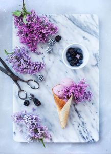 Co takhle zkusit šeříkovou zmrzlinu. Pokud má mít trochu barvu, přidejte do ní pár borůvek. Pak vznikne ten správný šeříkový odstín.