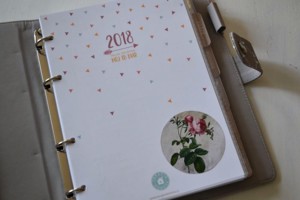 Diář je formátu A5, takže poměrně velký a něco váží. Tady přichází na řadu výhoda kroužkové vazby. My už jsme si diář připravili pro rok 2018 a nechali jsme v něm jen měsíční přehledy všech měsíců a týdenní přehledy pouze prvních dvou měsíců - leden a únor. Další listy jsme nechali stranou a budeme je doplňovat až staré měsíce skončí a z diáře je odstraníme.