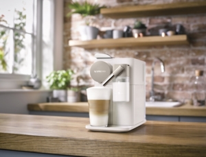 Kávovar Lattissima One je, co se týče mléka, velice chytrý a úsporný. Rozezná množství mléka v nádobce a spotřebuje celý její obsah. Vy si, podle rysky na nádobě, zvolíte jak moc mléka máte v kávě rádi, poté odpovídající hrníček a o nic více se nestaráte.