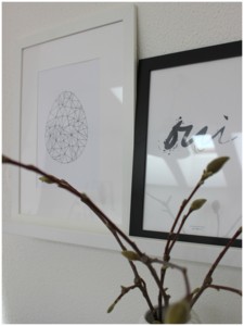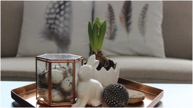 "Miluji jaro! Znáte mě a taky mám ráda, když se najde důvod na obměnu naší domácnosti. Nyní šly kaktusy na pár dní stranou a vytáhla jsem velikonoční a jarní doplňky. Letošní výzdoba je kombinace černobílé, přírodních materiálů a peříček. Peří je asi nejvýraznějším prvkem. Po Vánocích jsem za pár korun koupila polštáře a těšila jsem se, až je vytáhnu a použiji. Následovala objednávka vajíček a příček na Nordic day, trochu jsem se realizovala i já - vytvořila jsem si nový obraz a polepila pár plastových vajíček... Letos jsem použila i věci z loňské velikonoční výzdoby (připomenout si ji můžete ZDE). Nafotila jsem pro vás jen detaily z výzdoby, snad se vám to bude líbit :-) K fotkám napíši kde jsem co koupila..."