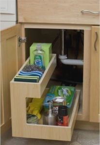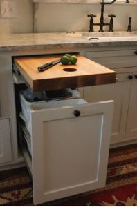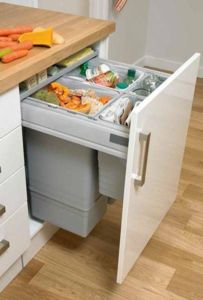 Poblíž koše by měl být dřez a také skříňka s čistícími pomůckami.