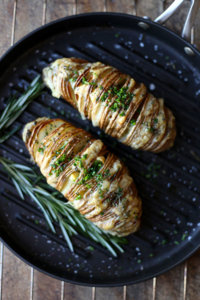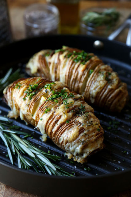 Jídlo, se kterým se můžete také setkat pod názvem hasselback. Brambory nakrájené na plátky, plněné rozmanitými surovinami.