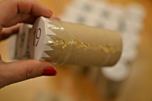 Jednotlivá kolečka s čísly přilepte k ruličkám. Můžete je ještě "pojistit" lepící páskou.