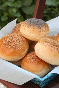 Následně z těsta uděláme malé bochánky, které opět necháme nakynout pod utěrkou, poté potřeme rozšlehaným vejcem a posypeme mákem nebo sezamem.