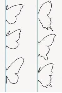 Na papír si předkreslete různé tvar motýlů, ale jen jejich polovinu. Papír přehněte a stříhejte, stříhejte, stříhejte. Obrysy motýlů můžete také vytisknout na tiskárně.