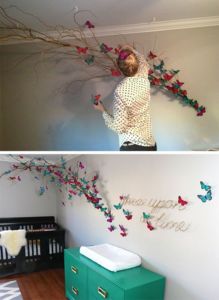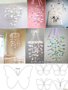 Další využití je na různé papírové závěsy nebo na větvičku. Tady můžete místo motýlů použít také ptáčky.