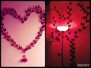Hotové motýlky přilepíte na zeď pomocí oboustraně lepících čtverečků nebo lepících gelových kapek. Můžete lepit jen tak náhodně nebo vytvářet obrazce.