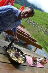 Pili jsme vodu a kávu s mlékem od krav, které se pásly všude kolem. Ráj!!! Specialitou Amoser Gut je pečení chleba v peci před chatou. To se zde pro veřejnost koná každý čtvrtek. Tato chata ubytuje až 15 lidí a ráno vám připraví přesně takovou snídani jako nám.