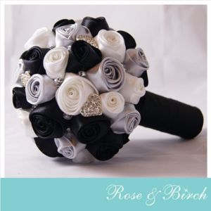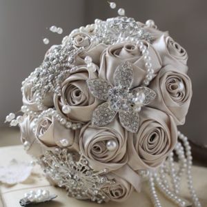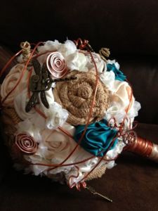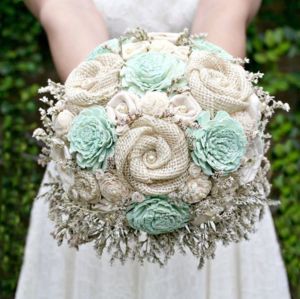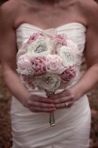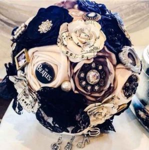 Netradiční látkové a brožové svatební kytice