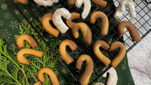 Po upečení je můžeme obalit ve vanilkovém a moučkovém cukru. Jejich dvoubarevnost a chuť ovšem vynikne i bez obalení.
