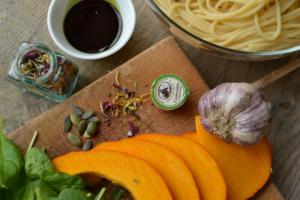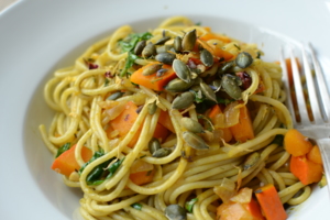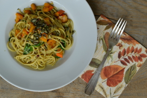 Dnešní recept je úžasný. Když nepotřebujete mít na talíři každý den maso, tak dýňové špagety jsou ideální oběd.