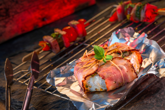 Sýr rozřízneme na polovinu. Olej smícháme s nasekanými bylinkami, potřeme sýr zvenku i zevnitř, a necháme chvíli marinovat. Pokud máme dostatek času, necháme odležet 24 h. Následně každý marinovaný sýr zabalíme do plátků Váhalovy slaniny nebo Chilli boku Váhala a převážeme přírodním provázkem. Opět zabalíme, tentokrát do dvou vrstev alobalu a grilujeme na mírném ohni 10 min po každé straně.