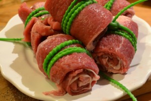 Zamotejte do rolády a zajistěte párátky nebo jinak, jak jste zvyklí. Já používám silikonové provázky, určené přímo na závitky.