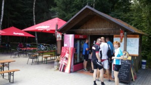 Převezli jsme se přívozem do Frýdavy a po krátkém občerstvení v místním kiosku vyrážíme na Vítkův kámen. A tenhle kiosek vám můžeme jen doporučit. Je to hned první občerstvovací místo potom, co vystoupíte z přívozu. Maličká chatka, kde milý pán udí žebra, klobásy a ten nejlepší hermelín, jaký jsme kdy jedli. Udí na deset let starém bukovém dřevě a z jídla je to fakt znát.