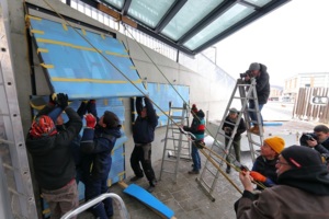 Demontáž reliéfu byla pro zlínské restaurátory Miroslava Bodanského a Vratislava Fouse neobvyklým úkolem, s jakým se podle svých slov běžně nesetkávají. Dílo připomínající svou formou puzzle bylo nutné nejprve po jednotlivých kouscích citlivě rozebrat, jednotlivé dlaždice zakreslit, očíslovat, opatrně uložit depozitáře a následně odborně ošetřit a opět sestavit do původní podoby. „Snímání reliéfu trvalo tři týdny, jeho opětovné sestavování dva měsíce,“ přiblížil náročnost práce Miroslav Bodanský. Nově je dílo umístěno v kovových rámech, které byly v pondělí 7. ledna zavěšeny na své místo.